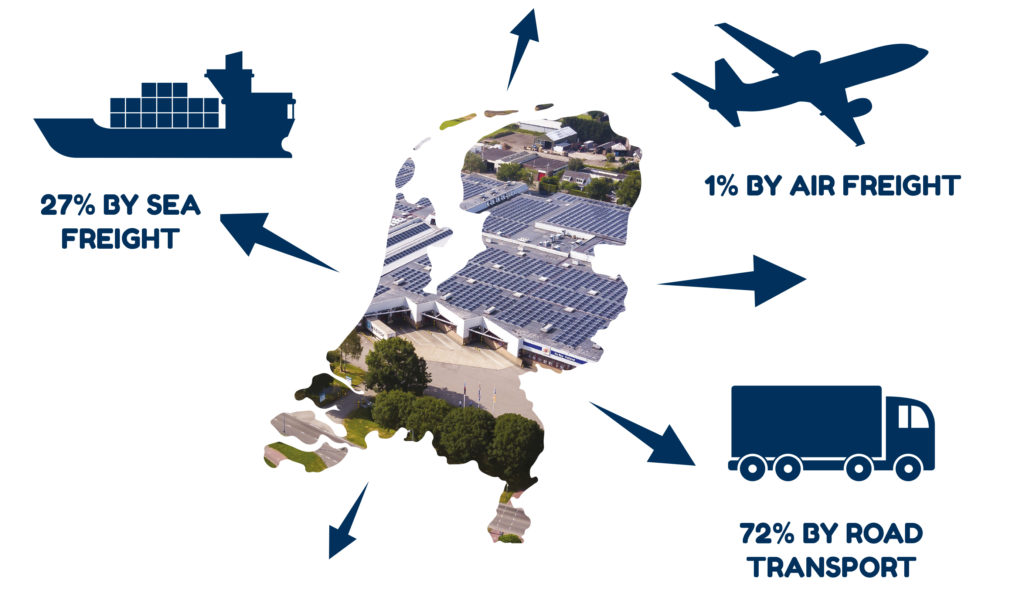We supply globally to over 40 countries: 72% by road, 27% by ship and 1% by plane.