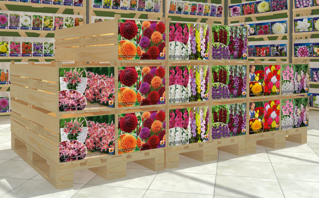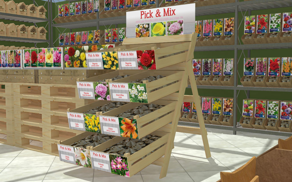 The name says it all. Handy displays that allow customers to compose their own ideal mix from eight varieties of bulb. These are then packaged in suitable, sustainable bags or boxes.